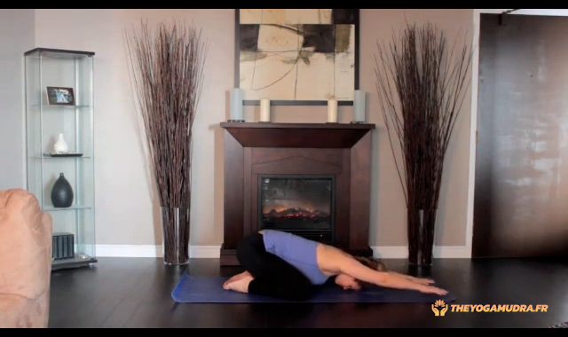 **Inspirez profondément tout en revenant lentement à une position assise. Prenez quelques instants pour ressentir les effets calmants de la posture avant de poursuivre votre pratique.